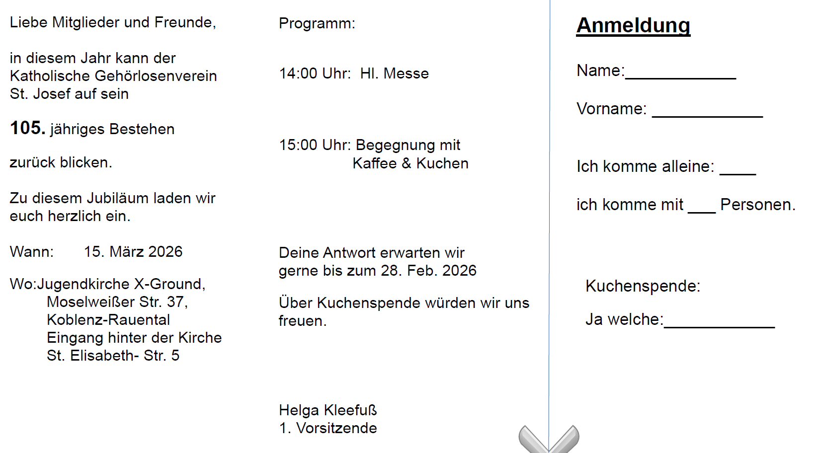 Bitte hier 2026_105Jahre (002) herunterladen, ausdrucken und Anmeldung an Helga Kleefuß schicken.