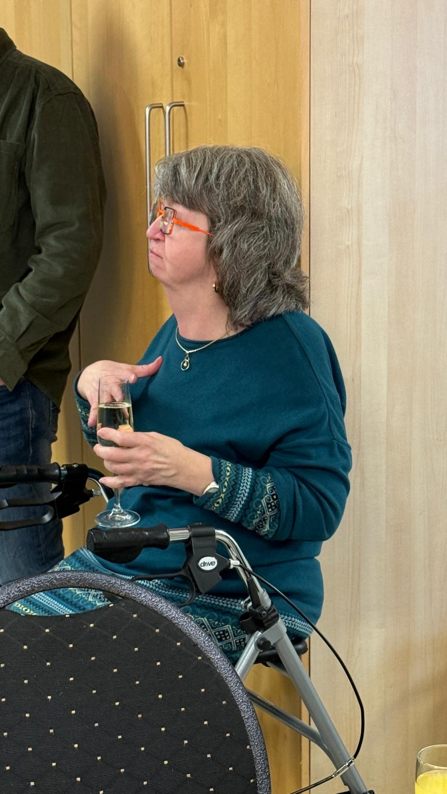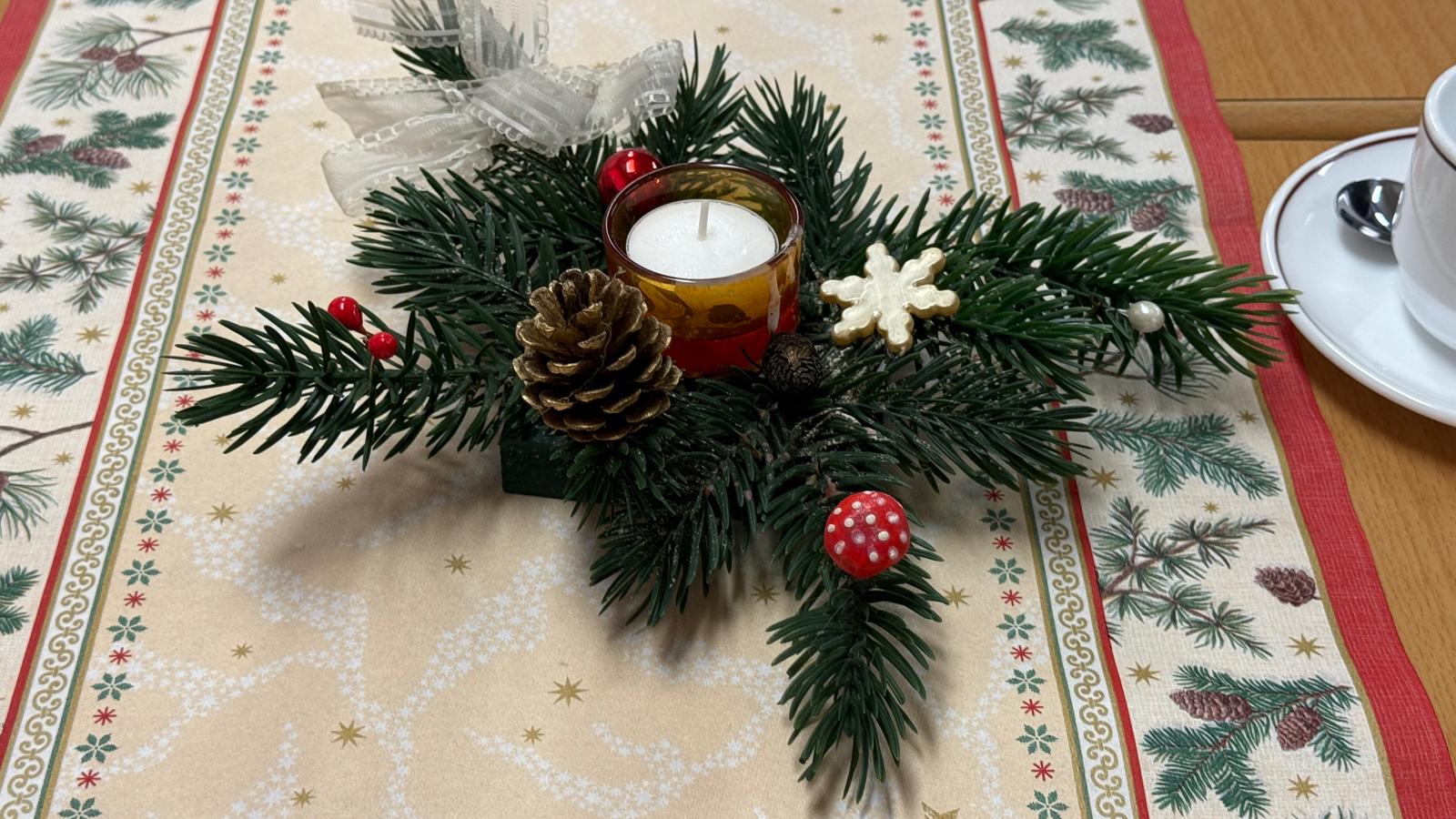 Anschließend fand die Begegnung als Form einer Weihnachtsfeier mit einem kleinen Mittagsimbiss statt. Bevor es mit der Weihnachtsfeier losging, hat Sigrid Meiser-Helfrich alle mit einem Sektempfang begrüßt.